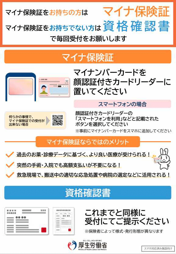 マイナ保険証か資格確認書をお持ちください